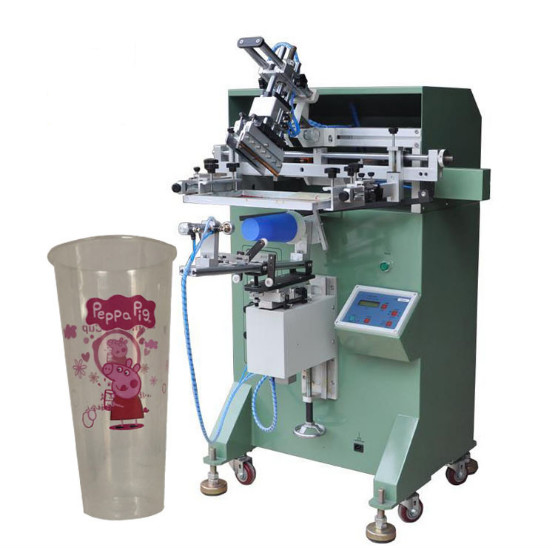 一次性奶茶杯注塑杯吸塑杯絲網印刷機專業印刷塑膠、玻璃、陶瓷、木材、金屬等材質制成之的圓筒、橢圓、扁型產品的曲面絲網印刷。印刷產品例如:唇膏外殼、化妝品瓶子、洗滌劑瓶子、飲料瓶、杯子,濾清器、罐子、玩具等